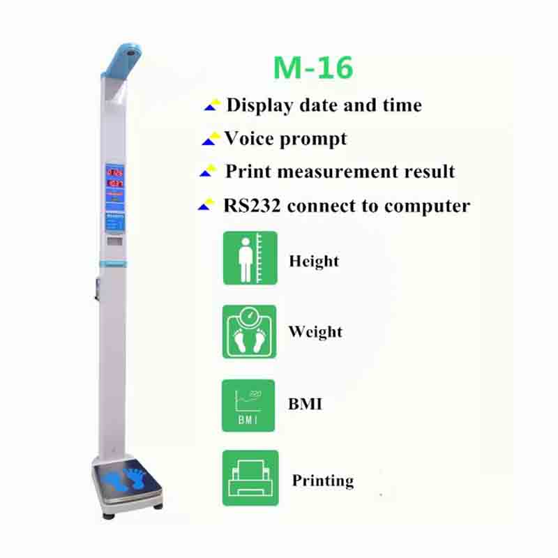 1.Height test, 2.Weight test, 3.Voice broadcast, 4.Digital or LCD display, 5.BMI Analysis, 6.RS 232 or Bluetooth. 7.Foldable 8.Print result, 9.Coin Slot